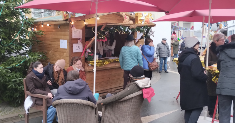 Hier rechts am Stand gab es den besten Glühwein. Es gab lobenswerterweise auch eine alkoholfreie Alternative für die Autofahrer.