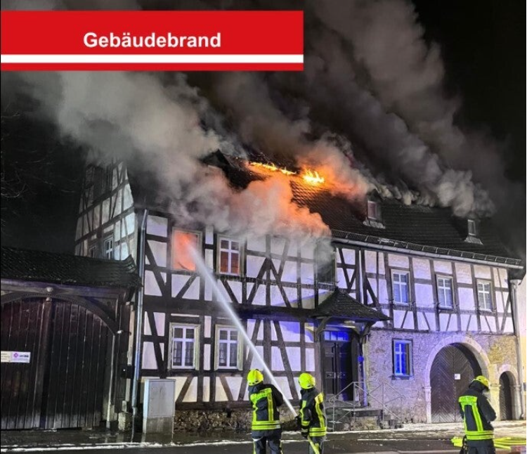 Zum Großbrand in Weyer waren am Donnerstagabend mehrere Feuerwehren im Einsatz. Unter anderem auch die Feuerwehr aus Villmar.