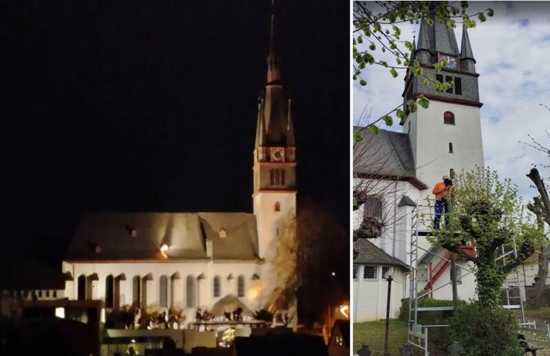 Ende letzter Woche waren Arbeiter dabei die Leuchten für die Kirchturmbeleuchtung auszutauschen. Die neuen Lampen sind energiesparender als die alten.