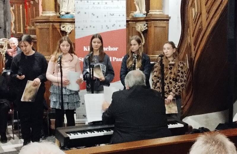 Der gastgebende Kirchenchor St. Peter und Paul brachte zum Ende des Konzerts unter der Leitung vom Joachim Raabe die Stücke "Wir warten auf dich", "In kalter Zeit", "Der müden Kraft" sowie "Und so grüßte der Himmel die Erde" zu Gehör. Zum Schluss des gut einstündigen Konzerts sangen Chor und Publikum zusammen noch das Lied "In das Warten dieser Welt" von Felix Mendelssohn Bartholdy bevor sich das Publikum mit einem lang anhaltenden Applaus bei den Sängerinnen, Sängern und Musikern bedankte.