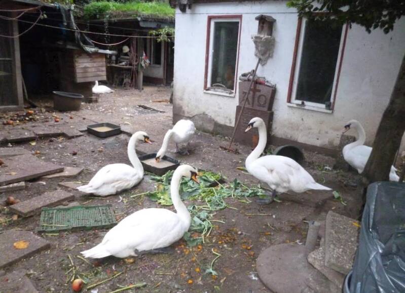 Die Schwäne sind gerne im Außenbereich. Eigentlich sollten sie wegen der Vogelgrippe nicht frei herumlaufen dürfen. Aber die frei lebenden Schwäne und Nilgänse an der Lahn werden ja auch nicht eingesperrt.
